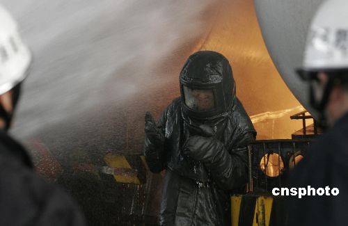2009年4月13日上午9時許,兩輛液化氣槽車在位于洛陽市城區北部的紅山工業園區洛北鑄鋼廠內作業時引發氣體泄漏燃燒事故,噴出的液化汽火焰在槽車罐體側部和底部不斷燃燒,罐體溫度不斷升高隨時都有爆炸危險,周圍數平方公里的生命和財產面臨嚴重威脅。洛陽消防支隊的10輛消防車輛和80名消防官兵,在多方噴水降溫的同時,冒死沖入火海中控制泄露部位并將兩車有效分離,經過2個多小時的撲救,阻止了一起嚴重爆炸事件的發生,事故未造成人員傷亡。目前事故原因正在調查之中。 中新社發 張曉理 攝