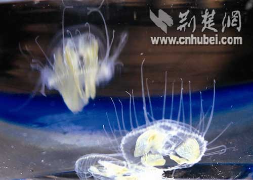 據介紹,當日下午,丹江口市新港村村民陳文新,在漢江中發現一種硬幣大小、通體晶瑩透亮的生物伸縮漂游,總數約有4000只。經該市水產局副局長、水產工程師熊治邦現場鑒定,它們是世界極危生物——桃花水母。