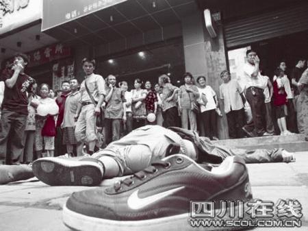 遂州中路是遂寧的繁華街道,現場很快聚集了很多圍觀市民。圍觀市民看見:躺在地上的死者很像一個高中生,年齡十八九歲,右手挽有一黑色雙肩背包。“25日是高考成績公布的日子,這個人又像高中生,是不是他沒考好而跳樓自殺哦!薄鞍Γ“裆蠠o名,腳下有路,再怎么說也不應該走這條路呀!”圍觀市民議論紛紛,“高考生跳樓”的消息不脛而走。