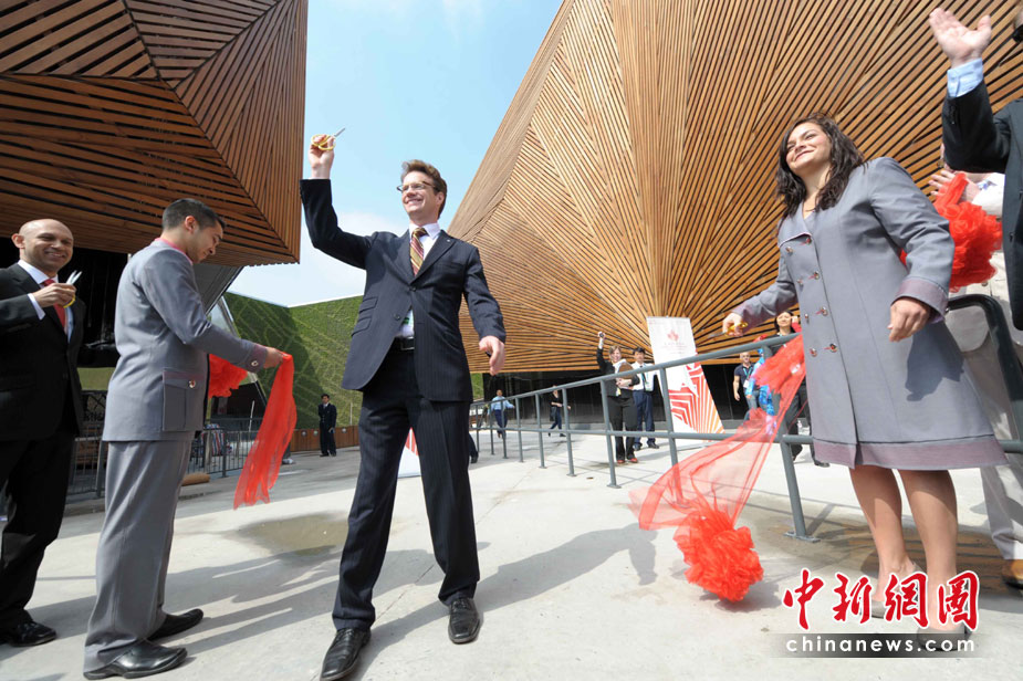 5月1日,上海世博園開園第一天,在中國民間家喻戶曉的“中國通”——加拿大人大山(右三)顯得非常忙碌。當日上午,加拿大館開館,作為該館總代表的大山主持了開館儀式。中新社發(fā) 陳文 攝