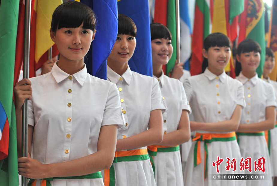 5月1日,2010年上海世博會正式開園,英姿颯爽的女子旗手們參加清晨的儀式。中新社記者 賈國榮攝
