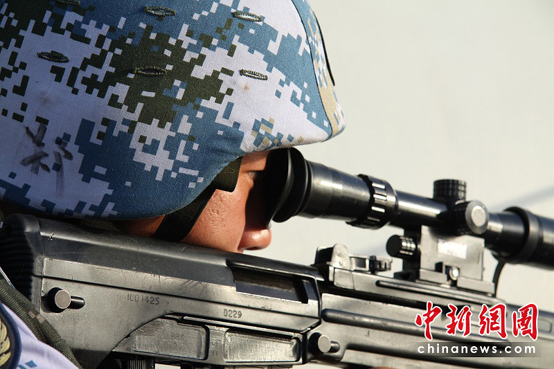 5月5日,特戰隊員在進行瞄準。胡軍 攝
