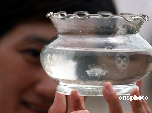 | 7月25日,在濟南市水簾峽景區的小天池里發現上千只“桃花水母”群。這些被撈起的水母呈圓形傘狀,約有一角硬幣大小,身體周邊長滿了觸角,靠身體一伸一縮前進。小天池位于海拔600多米處,水深50多米,由山泉匯集而成。桃花水母是地球上最原始、最低等的無脊椎動物之一,有幾億至十幾億年以上的生存歷史, 素有“水中大熊貓”之稱。迄今世界上發現11種淡水水母,我國有9種。如此多的“桃花水母”現身一地在國內實數罕見。中新社發 龔輝 攝