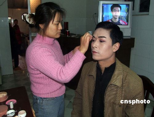 | 2006年11月24日,由安徽巢湖居巢區夏閣鎮農民裴德水、昂小紅自編自導自演自拍的系列電視劇--現代廬劇《苦難中的媽媽》正在該鎮緊張拍攝之中。裴德水、昂小紅分別于1996年和1998年創辦了裴皖、小紅廬劇團,活躍在巢湖市城鄉舞臺上,每年演出200多場次,觀眾達10萬人次。特別是近幾年來,這兩個劇團扎根農村,挖掘素材,自編自導自演了大量反映農村現實生活、積極向上的劇目,傳播先進文化,歌頌真善美,鞭撻假惡丑,富有教育意義,為廣大群眾所喜聞樂見,傳承、振興和發揚了地方特色傳統戲曲。中新社發 李遠波 攝