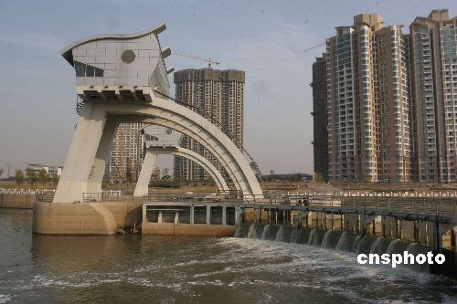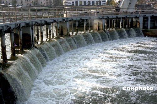 | 12月3日,南京啟動秦淮河入江口河口閘放水清淤。由于2006年長江水位持續偏低,外秦淮河與長江的水位落差目前仍保持在3米左右,原先擬定的用長江水置換外秦淮河水的調水方案無法實施,外秦淮河水質只能維持最低景觀要求。據了解,從12月3日至12月5日期間,秦淮河建設開發有限公司和南京水利部門將利用秦淮河與長江的水位落差進行調水沖淤,同時對河口閘進行例行調試維修,以進一步改善外秦淮河的水質。中新社發 文寶 攝
