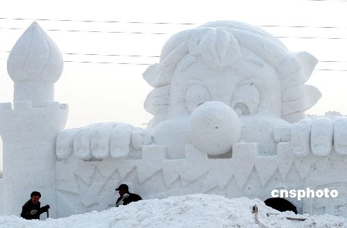 | 圖為雕刻中的小人國雪雕。長84米、寬50米、高21米的雪雕《大明宮》亮相于沈陽棋盤山冰雪世界。這座工藝精湛的雪雕作品,以唐代大明宮為原型,有很深的文化底蘊,造雪量之大也是歷屆冰雪節之最,共用雪8萬余立方米。目前主體工程已經完工,進入微雕細刻階段。據悉沈陽國際冰雪節開幕式1月10日下午5點30分在大明宮前舉行,到時候以沈陽為首的中部城市群的7位市長將共同打響信號槍,揭幕冰雪節。 據了解,此次冰雪節共有雪雕冰雕共10組,其中魔幻空間、小人國、戀雪等大型雪雕冰雕將帶領游人來到如夢如幻的冰雪童話世界。中新社發 文契 攝
