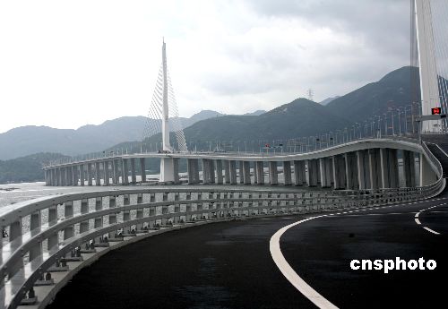 | 深圳灣口岸借七月一日香港全城同慶回歸十周年的喜慶日子舉行開通儀式﹐這是深港之間第四條陸路跨境通道。據介紹﹐深圳灣口岸采用了全新的“一地兩檢”通關模式,為過境車輛及旅客提供了方便、快捷和有效率的服務,其中旅游車乘客可在同一口岸大樓內辦理兩地通關手續,減省了一次上落車的時間,估計每名旅客的通關時間可以縮短五到十分鐘。深西通道一日傍晚6時正式開通使用﹐新建成的深圳灣公路大橋將迎來正式出入關口的旅客。中新社發 王麗南 攝