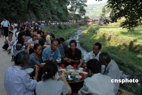 | 8月6日,在廣西龍勝樂江鄉(xiāng)地靈侗寨“福橋”旁舉行的百家盛宴,是人們渴望已久的團圓盛會。每年的農(nóng)歷六月二十四,是龍勝各族自治縣樂江鄉(xiāng)地靈侗寨舉辦一年一度“百家宴”的日子。這天,又稱“關公節(jié)”和“磨刀節(jié)”。每年的這一天,團結(jié)的侗族同胞都會遠道趕回來,邀請上周邊的親戚朋友,一起唱歌、跳舞、吹蘆笙、斗畫眉,一起在供奉關公的“福橋”上祈求風調(diào)雨順,共進百家長桌盛宴。中新社發(fā) 毛逸人 攝