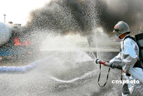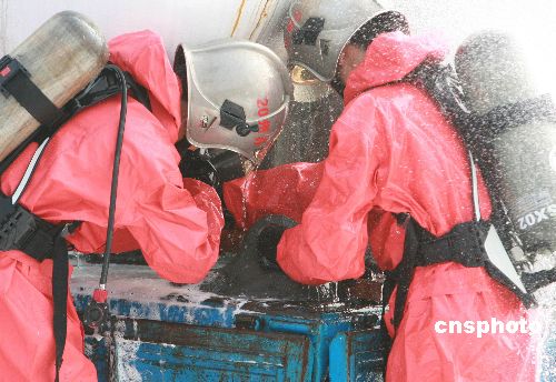 10月26日,蘇州工業(yè)園區(qū)舉行了一次針對道路運(yùn)輸危險化學(xué)品事故應(yīng)急救援實(shí)戰(zhàn)演練。該區(qū)公安、消防、衛(wèi)生、環(huán)保安監(jiān)等相關(guān)部門聯(lián)合參加了此次應(yīng)急救援、快速反應(yīng)和協(xié)調(diào)作戰(zhàn)等綜合演練。中新社發(fā) 蘇秀 攝