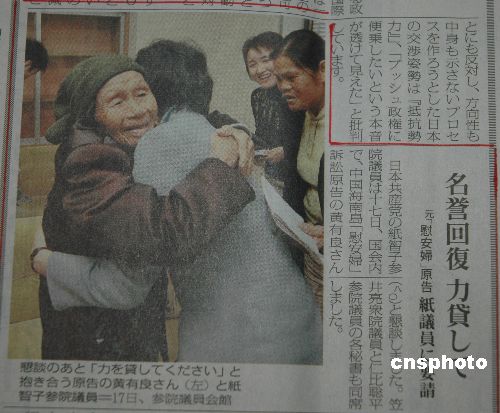 八十歲高齡的海南“慰安婦”受害者原告代表黃有良老人一月十九日深夜從東京返回海口。老人披露,二審庭審時,法官除詳細地了解老人受凌辱的事實經(jīng)過外,還首次詢問“慰安婦”經(jīng)歷給原告后來六十多年人生帶來的不幸尤其是造成的精神創(chuàng)傷。二00一年七月,黃有良等八名海南“慰安婦”受害幸存者向日本政府提起訴訟,要求日本政府公開道歉還其清白,并給予相應賠償。二00六年八月一審敗訴,同年底原告再次上訴。中新社發(fā) 王辛莉 攝