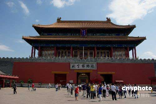 6月1日,故宮神武門修繕工程日前全部完工,修繕一新的神武門煥發出全新的光彩。奧運期間,中外游客可完整看到故宮中軸線景觀。在過去5年間,故宮博物院已經修繕了4萬平方米古建,其中10項已經先后辟為展廳投入使用。中新社發 九州 攝