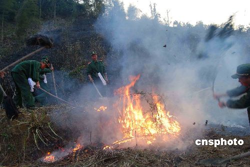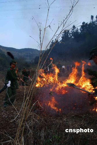 1月20日,武警福建總隊(duì)三明支隊(duì)官兵在奮力撲火。當(dāng)日下午16時(shí)左右,福建三明市梅列區(qū)洋溪鄉(xiāng)羊口仔村后山由于村民野外用火不慎引起山林大火。駐在附近的武警三明支隊(duì)100多官兵經(jīng)過(guò)1個(gè)多小時(shí)的奮力撲救,終將山火撲滅。中新社發(fā) 盧立杰 攝