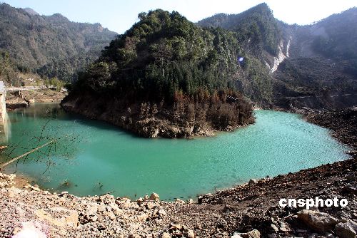 1月24日,多日大霧陰雨的四川5·12大地震地區出現了難得晴朗天氣,在大地震中令人談虎色變、危及下游安全的茶坪河堰塞湖遺址呈現了碧綠的湖水與青山交相輝映的美景。據地質專家介紹,四川著名的旅游勝地九寨溝就是幾千年以前地震后形成的堰塞湖早就的。中新社發 任晨鳴 攝