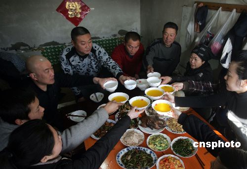 一月二十五日,北京市大興區社區矯正和幫教安置基地,刑滿釋放人員和工作人員一起歡度春節。作為刑滿釋放人員從高墻生活到社會自立的過渡機構,該基地為這些人員提供一些蔬菜種植等產業崗位。中新社發 廖攀 攝