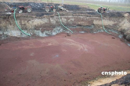 2009年2月5日,在河南新蔡縣十里鋪鄉(xiāng)麥田旁邊一半干旱的路溝,3臺(tái)抗旱四輪車在“爭(zhēng)喝”不足1畝水面的池水。抗旱號(hào)角在新蔡縣吹響后,全縣22個(gè)鄉(xiāng)鎮(zhèn)都制定了切實(shí)可行的用水方案,挖掘一切可利用的水源,積極引導(dǎo)廣大農(nóng)民群眾投入到抗旱保苗工作中。中新社發(fā) 趙學(xué)風(fēng) 攝