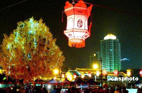 2月6日,“2009蘇州元宵燈會”在蘇州古運河畔的古胥門廣場閃亮登場,現(xiàn)場舉行的賞花燈、猜燈謎等民俗表演活動,吸引了許多市民和中外游客。中新社發(fā) 王建中 攝