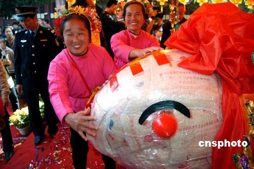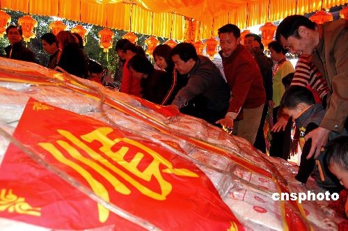 2月9日,元宵節澎湖特有的“乞龜”民俗在福建泉州天后宮舉行盛大的“平安乞龜”活動,為兩岸鄉親送上元宵祝福。中新社發 傅丹丹 攝