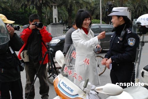 2月20日,廣西桂林警方開展民眾拍攝交通警察執勤活動,讓民眾零距離接觸交警的執法工作。中新社發 周利朔 攝