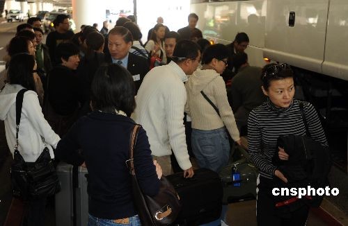 當地時間二月二十四日中午,由北京某房地產網站組織的所謂“中國赴美購房團”一行二十多人抵達洛杉磯機場,團隊規模比此前該網站宣稱的四十人明顯縮水。根據行程安排,他們將用十天左右的時間“考察”洛杉磯、拉斯維加斯、舊金山、紐約和波士頓五個城市的住宅市場。據接待該團隊的美國加州商業基金會人士稱,該團隊將會兼顧看房與旅游觀光。中新社發 張煒 攝