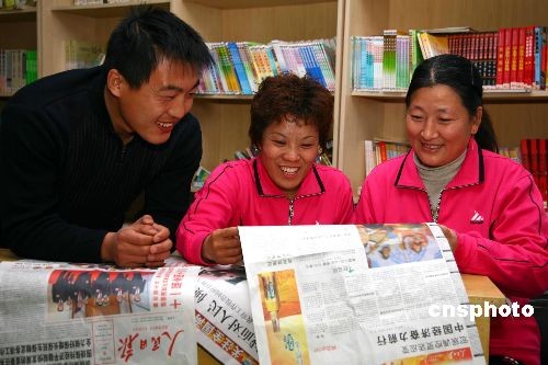 3月7日,北京市懷柔區雁棲鎮陳各莊村村民正在村中“益民書屋”閱讀“全國兩會”專題報道內容。全國“兩會”召開以來,京郊農民十分關注特別是有關“三農”議題,黨中央關于“三農”的有關新政策,極大的鼓舞了京郊農民艱苦創業的勇氣,堅定了農民勤勞致富奔小康的信心。中新社發 卜向東 攝