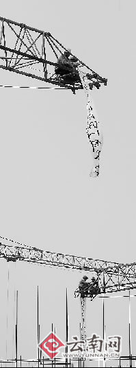 圍在下面的討薪工人們反映說,最根本的原因是施工方云南某建筑集團(tuán)公司第一分公司不付清他們工錢。爬到塔吊上的7名農(nóng)民工都是工地帶班的,他們手下所帶的農(nóng)民工少則幾十人,多則上百人。因為沒有發(fā)工錢給大家,他們怕大家找他們要錢,怕大家動手打他們,他們才爬塔吊討工錢的。