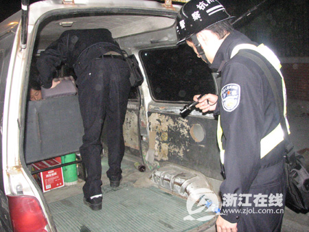 22日晚上8時14分許,一輛灰色的長安之星面包車正行至余杭好運路與聚州路口時,被民警攔下。 車上的駕駛員和2名乘客配合地下車接受檢查。