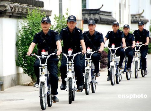 5月5日,江西婺源的大街小巷的城區(qū)出現(xiàn)了一支特警自行車治安巡邏隊。他們騎乘統(tǒng)一配發(fā)的輕便自行車,車前掛有“巡警110”標志,車后配備便民服務箱。為群防群治,共織平安網(wǎng),婺源縣公安局特警大隊由60人組成的一個特色 “警務自行車巡邏隊”,以適應該縣轄內小街巷多、警車巡邏不易覆蓋的治安特點。同時利用自行車巡邏既環(huán)保、便捷、無噪音,又可增加古城小道的見警率,還避免了機動車頻繁流動造成的道路擁堵, 大大提高“走街串巷”治安巡防的效率,延伸了公安機關對社會面的防控觸角。 中新社發(fā) 王國紅 攝