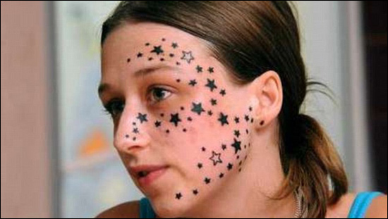 據(jù)英國媒體6月16日?qǐng)?bào)道,比利時(shí)一名女孩日前控告她的羅馬尼亞紋身師,索要8500英鎊的手術(shù)賠償費(fèi)。理由是女孩要他在她臉上紋3顆星星,該紋身師卻一口氣紋了56個(gè),致其毀容。