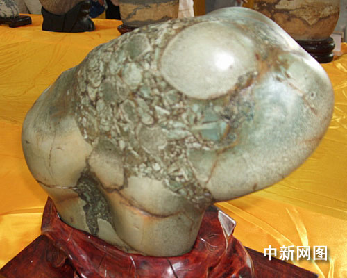 中新網宜賓7月7日電(邱萍)7日,在四川宜賓縣第二屆奇石展會場,數百名觀眾圍著一枚形似青蛙的石頭稱奇贊嘆。晶瑩剔透的石頭上,長出兩個圓鼓鼓的眼睛,似一只青蛙蹲在地上,人們觀后無不驚嘆大自然的鬼斧神工。