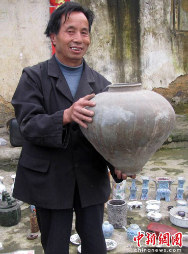 中新網重慶6月17日電 (劉發生) 重慶秀山土家族苗族自治縣農民趙家財對收藏幾近癡迷,22年間,他幾乎傾盡自己所有財產從民間收購了近200件藏品。