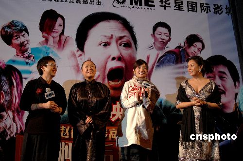 | 香港導演許鞍華的新片《姨媽的后現代生活》3月5日晚在北京華星國際影城舉行首映式,給三八婦女節帶來一部應景、溫情的電影。當晚,導演許鞍華,編劇李檣,演員斯琴高娃、趙薇、史可出席首映式!兑虌尩暮蟋F代生活》由周潤發、斯琴高娃聯袂主演。影片講述年過半百的葉姨媽,在時代的大潮中無所適從,經歷了瘋狂的黃昏戀,破滅了發財夢,最后黯然離開繁華都市,回到東北老家,重新品嘗清貧、本色的人生況味。雖然制作成本不高,但因故事精彩,影片同樣吸引了眾多明星加盟,如盧燕、史可等。首映式前,在香港、北京、上海等地的看片會上,此片獲得一致好評。中新社發 王利 攝