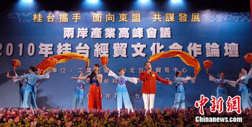 中新網(wǎng)臺(tái)北7月4日電(廖祖平)中共廣西壯族自治區(qū)委員會(huì)書記郭聲琨率領(lǐng)1000余人的廣西經(jīng)貿(mào)文化代表團(tuán)7月1日—7月5日在臺(tái)灣參訪,這是海峽兩岸經(jīng)濟(jì)合作框架協(xié)議(ECFA)簽署后大陸第一個(gè)赴臺(tái)的經(jīng)貿(mào)文化代表團(tuán)。客家人聚居的廣西賀州市也由市委書記彭曉春率賀州代表團(tuán)隨廣西團(tuán)一起赴臺(tái)。7月3日下午,由桂臺(tái)(賀州)客家文化旅游合作示范區(qū)與臺(tái)灣世界客屬總會(huì)、廣西同鄉(xiāng)會(huì)聯(lián)合主辦的桂臺(tái)(賀州)客家文化旅游經(jīng)貿(mào)合作懇談會(huì)在臺(tái)北舉行。