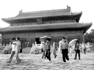 昨日下午,這些臺灣的旅游巨頭們饒有興趣地參觀了清西陵景區中葬有雍正皇帝的泰陵。在泰陵隆恩殿,大家一邊聽導游員的精彩講解,一邊不時跑到龍袍前合影留念。