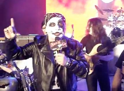 中新網9月3日電 據臺灣聯合報報道,第3屆搖滾臺中樂團節4、5日將登場,臺中市長胡志強2日晚臉化尸妝、腳跨哈雷重型摩托車現身記者會,一張臉讓現場媒體嚇得倒彈,以為“看到鬼!”