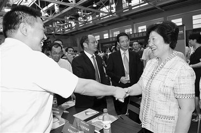 “書記、省長好!”在機械洽談區,省委書記孫春蘭與省長黃小晶一出現,正在洽談的臺商就不約而同地鼓起掌來。他們熱情地迎上前,七嘴八舌地介紹起自己帶來的招商項目。臺灣張鐵工廠股份有限公司董事長張清雄來自臺中,已在福建設廠。他對洽談會興趣濃厚!岸嗤顿Y,很好。這樣產業能夠群聚。”孫春蘭微笑著對張清雄說。張清雄頻頻點頭。