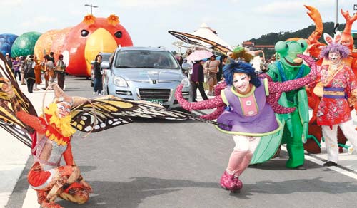 “吉祥慶花博”由五只花博娃娃會在四大展區(qū)發(fā)放糖果;“名人慶花博”邀各界明星貴賓出席慶祝;“通關(guān)慶花博”園內(nèi)各家特約商店有不同“通關(guān)密碼”,例如說出慶賀花博的話,或大跳國標舞等,就可獲得店家的贈品及折扣。