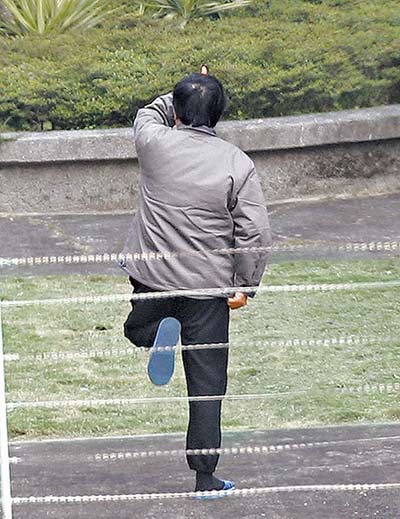 電視畫面顯示,陳水扁在放風(fēng)中,沿著看守所內(nèi)的小操場,進行慢跑,大約持續(xù)了20多分鐘左右;放風(fēng)時,也由幾名員警戒護,隨時注意周邊狀況,警察也手持望遠鏡,注意四周制高點的狀況。