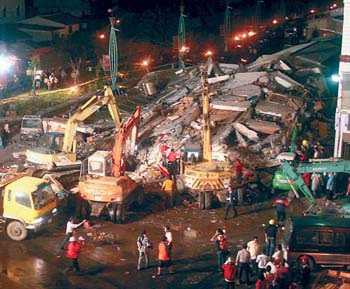 屏東恒春近海26日晚發生里氏規模6.7地震,全臺皆可感受到震度,8分鐘后再發生里氏規模6.4的余震。恒春新興路1棟3樓的正興家具行在第2次地震中倒塌,救難人員出動大型機具救人。(來源:臺灣《中國時報》)