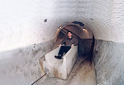 據了解,這兩條密道往東可達北安公園,全長七十八米,沿在線方裝有電燈照明設備,共有四十五個燈座,八十六個階梯;往西可抵圓山聯誼會劍潭公園,全長八十米,七十五個階梯,內部蜿蜒曲折,一直到出口處可以見到兩扇長期深鎖的金屬門,打開后還會見到兩座高約五米的石墻遮蔽,外界根本看不出這是坑道出口。