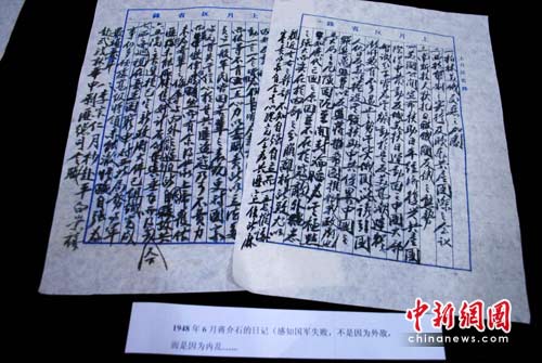 中新網重慶5月11日電 (孟幻)11日,紅巖革命歷史博物館展示了其從美國抄回的蔣介石日記。據稱,這些日記為首次在大陸曝光,將有利于近代史實的完善和補充。