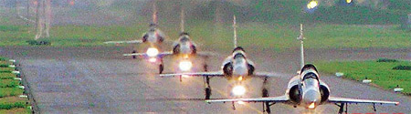 中新網(wǎng)4月27日電 據(jù)臺灣媒體報道,臺軍漢光二十六號演習(xí)26日展開,為驗證幻影戰(zhàn)機保存成效,演習(xí)首度安排45架戰(zhàn)機逃離新竹空軍基地,飛往花蓮佳山基地,以逃避導(dǎo)彈攻擊。