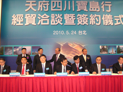 四川省工業(yè)經(jīng)濟(jì)聯(lián)合會(huì)與工業(yè)總會(huì)、臺(tái)灣區(qū)電機(jī)電子工業(yè)同業(yè)公會(huì)等川臺(tái)經(jīng)貿(mào)、旅游、農(nóng)業(yè)、文化團(tuán)體,上午共簽署5份合作協(xié)議。“貿(mào)協(xié)”下午在臺(tái)北國際會(huì)議中心舉辦川臺(tái)采購洽談會(huì),預(yù)計(jì)安排上百場(chǎng)1對(duì)1洽談。