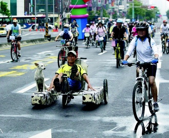 中新網(wǎng)9月19日電 據(jù)臺灣《聯(lián)合晚報》報道,配合臺64號線臺北縣八里─新店東西向快速道路全線通車,臺北縣政府舉辦“大臺北國際無車日”活動,清晨4時起來了約七萬名單車族,急著想上路嘗鮮,卻都被擋下來堵在高架橋上。今天天氣非常涼爽,但車友們的火氣卻很大。