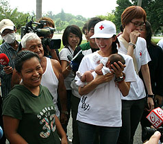 1名媽媽也將剛滿月的女兒讓林志玲抱抱 ,希望感受到林志玲親切的問候,這名媽媽也希望女嬰長大后要與林志玲一樣漂亮。
