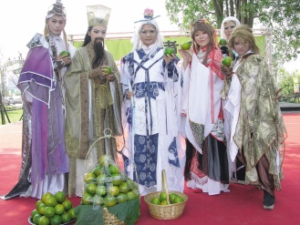 “竹崎水果節椪柑感恩祭”本周末舉辦兩天,昨天宣傳會邀請布袋戲偶像代言。竹崎鄉長王焜弘兩任鄉長任內賣力促銷竹崎水果和觀光,每次都配合主題打扮成玉觀音、土地公等,昨天以布袋戲名人“素還真”扮相出現,鄉親們爭相合影。