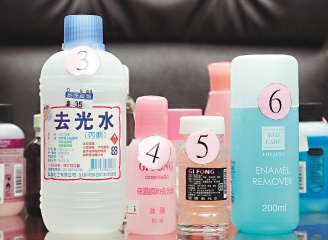 被驗出含甲醇的去光水甲醇含量達29.6%至75.6%。臺北市衛生局藥食處處長姜郁美表示,為讓指甲油溶化,去光水多含有機脫脂溶劑,大部分以丙酮為主要成分,但部分廠商因成本考慮,可能會添加甲醇,由于甲醇吸收入體內,在肝臟中會被氧化酵素轉化為致癌物“甲醛”,可能對視網膜、中樞神經、肝、淋巴造成嚴重傷害。