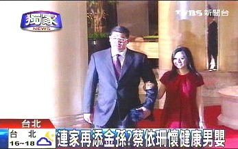 連勝文說要調整重心,只是老大是男生,原本期待第二胎是美麗女娃,現在希望可能落空。嬰兒超音波初步顯示,蔡依珊懷里的寶寶是一名健康的男嬰,也就是說連戰很有可能在今年7月就抱到第2個金孫。