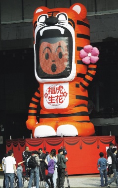 中新網(wǎng)2月11日電 據(jù)“中央社”報(bào)道,2010臺(tái)北燈節(jié)26日起一連舉行10天,除傳統(tǒng)花燈外,臺(tái)北市政府文化局今年結(jié)合當(dāng)代藝術(shù),規(guī)畫(huà)“公共藝術(shù)燈區(qū)”,在市府大樓門(mén)前及上方放置2只可愛(ài)的“開(kāi)心福虎”,并將征募6666位民眾的大頭照,在燈節(jié)期間投影在臺(tái)北市政大樓的外墻上。