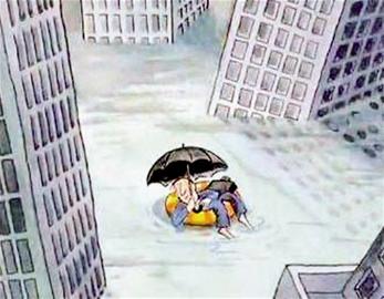 《±2℃》是去年8月“莫拉克”風(fēng)災(zāi)后開始籌款,耗資800萬元新臺(tái)幣,歷經(jīng)5個(gè)月拍成,片中模擬全球氣溫暖化使海平面上升6米,臺(tái)灣的嘉義東石、屏東林邊東港以及云林麥寮首當(dāng)其沖地沉入海底。海水慢慢地從沿海向內(nèi)地淹沒,漫天浪花將101大樓吞食,全臺(tái)遭滅頂成為海底城市。