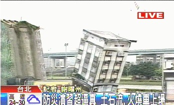 臺北縣下午進行災害演習,其中有個片段是模擬強臺來襲時,橋梁斷裂,造成轎車掉入橋中火燒車。
